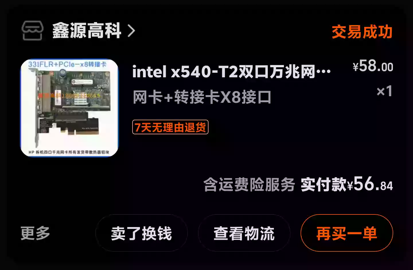 后期发现自带网口不能用正好还有一个空网口 >_<